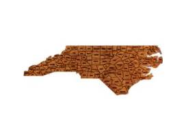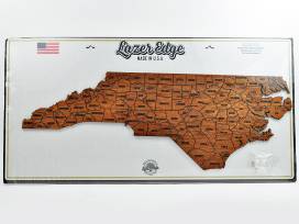 Large NC-shaped wooden wall-hanging with engraved counties.