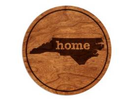 Show your North Carolina love with this set of four NC-engraved maple coasters and "home" NC-shaped ornament.