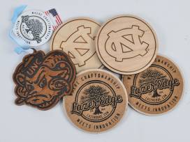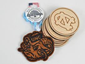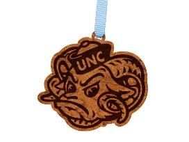 University of North Carolina Chapel Hill rameses head cherry ornament, and University of North Carolina Chapel Hill interlocked NC maple set of 4 coasters