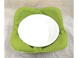 0Protect your hands from that steaming hot bowl coming out of the microwave or that frozen bowl of ice cream! These reversible bowl cozies (roughly 7.5" squares) will hug bowls roughly 6" in diameter. Made from cotton, you can put your bowl in it and put it in the microwave, so you don't have to touch that bowl and burn your hands! Useful for everyone, these cozies would make a great gift--we're convinced that once you start using them yourself, you'll wonder how anyone ever lived without them! (Bowl is for demonstration purposes only and is not included.)