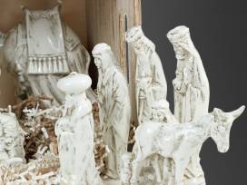 Add this beautiful ceramic nativity to your Christmas decor to really add to the feeling of the season. Comes with Mary, Joseph, Baby Jesus, shepherd with baby sheep, 3 sheep, 1 donkey, 2 camels, and 3 wise men.