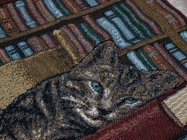 Cozy up under this beautiful knit throw featuring cats lounging in a library. 100% cotton, 51" x 68", multi-colored. Machine wash cold, tumble dry low.