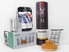- Whiskey smoker kit with set of 4 Mikasa whiskey glasses and 2 sets of large ice cube molds