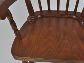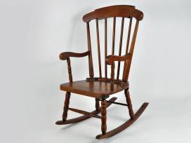 Add a little flair to your child's room with this sweet vintage wooden rocking chair, in a walnut color.