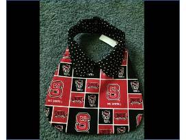 The winner will be able to choose two (2) bibs from an array of sports fabrics so that their littlest fan will be sporting team colors on game day. One style has a tie and the other style has a fancy Peter Pan collar.