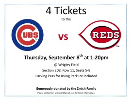 - 4 Cubs tickets vs Cincinatti Reds on September 8 with parking pass
