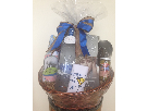 This fun basket of Martini Themed goodies is perfect for the martini lover you know. Packed with a set of martini glasses, black blinged out flip flops with a martini glass charm, martini inspired clothing (apron, socks and pajamas), and even a martini printed dog collar you have everything you need to embrace your love of the martini. And for the next day, a little book with some tips on how to cure what ails you.