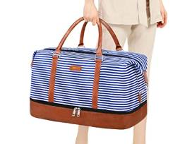 This 3-IN-1 weekender bag contains a canvas weekender bag, messenger bag & storage bag. The weekender bag is perfect for weekend trips. Back side luggage sleeve allows you to slide it over the handle of rolling suitcase or luggage. A zipper pocket on the back is available to hold your phones, ID cards or passports. There are 3 inner pockets to store small items separately.