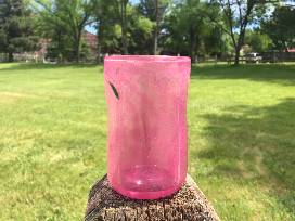 Use this colorful hand-blown glass vase to hold a seasonal bouquet or as a stand-alone piece to brighten any room. Made in the CRMS glass studio by Eden McClellan '22. Measures 3.5" in diameter, .75" tall