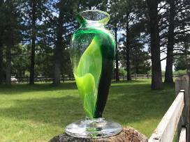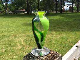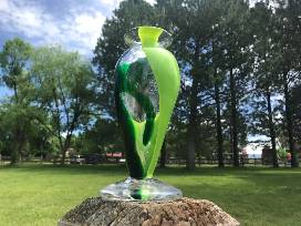 A lovely form and stylishly colored, this vase is a prize! Functional and fashionable. Handcrafted by Ambar Linares-Egger '23 in the CRMS Glass Studio. Measures 3.75" in diameter at the base, 2.5" in diameter at the top, 8" tall