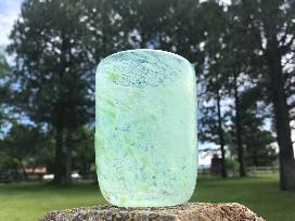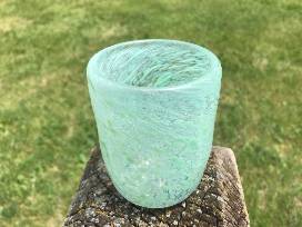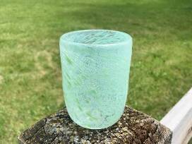Shear beauty in this mint-green glass cup! Handcrafted by students in the CRMS Glass Studio. Measures 2.75" in diameter, 4." tall