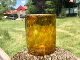 You'll want to get your hands on this delightful glass cup! Handcrafted by students in the CRMS Glass Studio. Measures 3" in diameter, 3.75" tall