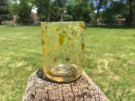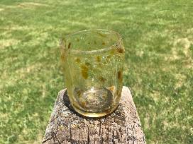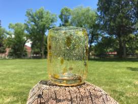 Simple and pleasing handblown glass cup. Handcrafted by students in the CRMS Glass Studio. Measures 3" in diameter, 4" tall