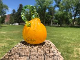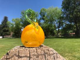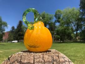 An annual favorite of OysterBASH auction-goers. Own your own CRMS glass pumpkin! Handcrafted by students in the CRMS Glass Studio. Measures 3" in diameter