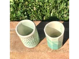 Enjoy your favorite coffee or tea in these gorgeous mugs designed and crafted in the CRMS Pottery Studio by Emma Roberts '24. Measures 2.75" in diameter, 4" tall.