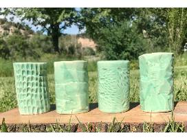 Enjoy your favorite coffee or tea in these simple mugs designed and crafted in the CRMS Pottery Studio by Gavin Barnedt '25, Emma Roberts '24, Taylor Rubinstein '24, and Lila Russell '25. Measures 2.25" in diameter, 4" tall.
