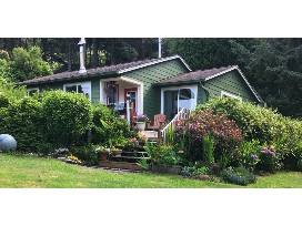 This is a cozy two-bedroom home with an ocean view on a half-acre hillside, backed by National Forest.