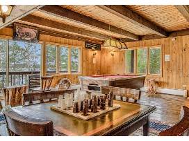 Perfect for large family gatherings or work getaways, this spacious home offers peace and seclusion on Carpenter Lake! Boasting nine lovely bedrooms, wonderful views of the lake, ample space to entertain, and a rustic feel that is sure to charm everyone in your party, this lodge is more than ready to assist in making the best memories. As soon as you enter this home, you will be greeted by the expansive lower level that opens up to two pianos, exposed ceilings, a wonderful living area, a pool table, ample gaming tables and board games, plenty of wildlife decor, a dining hall for large gatherings, and a well-equipped, full kitchen to whip up delicious meals with ease! This floor also features a media room and the first bedroom with an en suite bath.
