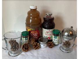 - Traditional Winter Wassail Kit (including recipe, cider, cranberry juice, spices, mulling spice ball, and two mugs)