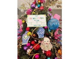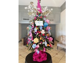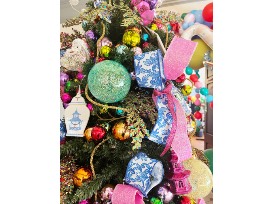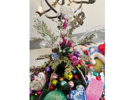 "Oh What Fun" indeed! Our themed tree this year is just that... FUN! A beautiful display of pinks, purples, greens and yellows, this tree will brighten up any home or business! Topped with a fuchsia tree and colorful sprays and clear ball picks, it is a must see!
