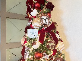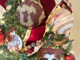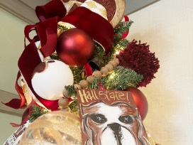 The "Wrap It In Maroon and White" Mississippi State University 5 ft tree just screams "Hail State!" With hand-painted bulldog ornaments and velvety maroon ribbon, this tree is sure to give someone a dawg-gone good Christmas!