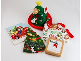 Set includes Christmas tree soft toy, Christmas Pajamas (18m-24m), 2 Christmas books and a handprint ornament kit.