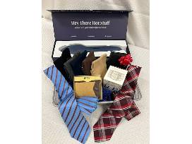 J Robert's Menswear will accessorize your wardrobe with a treasure trove of essentials, including: - 5 Pairs of Assorted Color Socks: Because life's too short for boring socks! - 2 Gianfranco Italy Ties with Pocket Scarf: Elevate your formal wear with these stylish accessories that scream sophistication. - Hickory Creek Wallet: Keep your essentials organized in this classy wallet that's both functional and stylish. - Barrel Down South Bourbon Cream Scented Candle: Set the mood at home with this rich, inviting scent-perfect for unwinding after a long day!