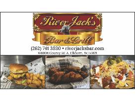 River Jack's Bar & Grill $20 Gift card; Cooler bag with River Jack's T-shirt, 4-pk Good Boy Vodka, 4-pk Carbliss vodka cocktail, 2 River Jack's koozies, Miller Lite knitted cap