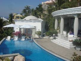 Nestled on a cliff only meters above the ocean spray of the Pacific, you will find ten thousand square feet of marble splendor melded into Etruscan Architecture. Five unbelievable, fully air conditioned, sea-facing, private master-suites. Two swimming pools with cooling waterfalls. Three sunning decks and a fourth with sun chaises partially submerged in the cooling pool. Shaded palapa bar. Outside living and dining areas with sunset views that are simply "Too Awesome for Words".