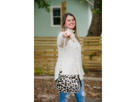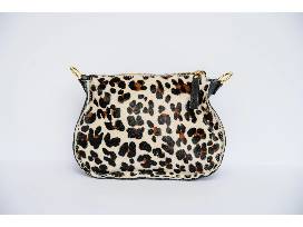 Hair On Leather Pony Bag in White Leopard with Cream and Gold Acrylic Strap