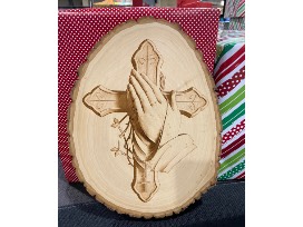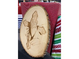 Cross well 3D illusion engraving on live edge wood. Made on a Basswood plank.