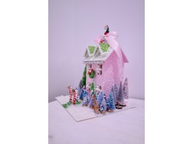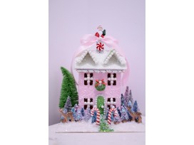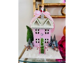 Pink & green pearl handcrafted Christmas Village House perfect for any Christmas decor setting!