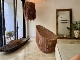 Step into your beachy-chic oasis with 6 days, and 5 nights for 4 guests in the exclusive Aldea Zama community in Tulum. This eco-conscious boutique retreat inspires nature with a stunning minimalist design and natural, earthy tones that blend organically with its lush jungle surroundings. 2 peaceful en-suite bedrooms feature comfortable amenities, while your open living space harmonizes a seamless flow to your private outdoor plunge pool.
