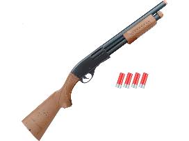 Does NOT Shoot Bullets. Load & eject toy shells from chamber. Pump action mechanism and ejecting shells. The included four shells eject from chamber to help add realism to kid's play time.