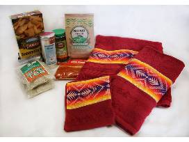 Southwest 3 piece towel sets, 3 Navajo Teas, 1 chili powder, 1 fry bread mix, 1 Sopaipilla mix,1 Hatch Green Chili Sauce.