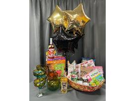 With your new cast iron tortilla press and mini frozen beverage station, your family and friends will request every night be TACO night. Kit includes themed napkins, plates, festive balloons, cactus and dinosaur taco holders, a TACO Tuesday Cookbook, margarita glasses with a matching pitcher, ponchos to spice up the look of your beer, and a bottle of 818 Tequila Reposado. You will be set for a fun and tasty night! Don't forget to decorate with the included authentic Mexican blanket. Chips, dips, and margarita mix finish off this fabulous festive basket.