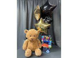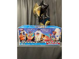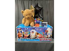 Blast off to fun and adventure! Your child can travel through space, the stars and planets with this realistic rocket ship. Your child will love piloting the starship, looking through the telescope, fixing wires on the exterior maintenance panel, or crawling through the escape hatch. The swivel chair and star viewer screen make it feel like they are flying through the galaxy. Space comes even more to life with the included room projector. Also included are an oversized teddy bear and Space Look and Find board book.