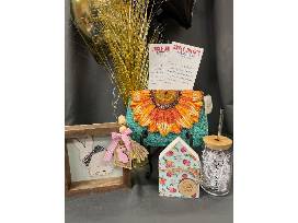 Bring in the new season with Peppy Posies. This local business offers beautifully crafted gifts and items for the home. This basket offers goodies with Spring and Easter themes, including a framed bunny cutout, garland, and drink glass with straw. Also included is a beautiful Mary Frances hand beaded Sunflower bag that will keep you in the seasonal mood and fashionable while you dine out with your $50 Uncle Julio's gift card.