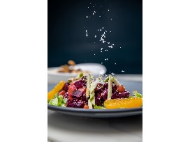 Enjoy a private dinner for 8 in the Juban's wine cellar. This Chef's dinner is five courses with a wine pairing.