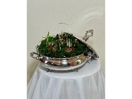 What a beautiful way to show off your paperwhites! This footed serving bowl with lid is silver plated and packed with paperwhite bulbs. These flowers have easy care and will bloom every year.