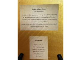 Oh God, who didst grant to Saint George strength and constancy in the various torments which he sustained for our holy faith; we beseech Thee to preserve, through St. George's intercession, our faith from wavering and doubt, so that we may serve Thee with a with sincere heart faithful unto death.
