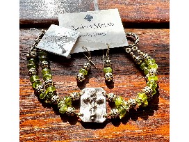 1These peridot and gold bracelet and earring set was handcrafted by Artist Rachel Legarde. You will see her attention to detail makes her a true expert in her trade.