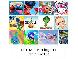 - Includes a 1 year subscription of Amazon Kids+: the only service with thousands of ad-free books, games, videos, apps and Alexa skills from brands like Disney, Nickelodeon and PBS Kids. After 1 year, your subscription will automatically renew every month starting at just $4.99/month plus applicable tax. You may cancel any time by visiting the Amazon Parent Dashboard or contacting Customer Service.