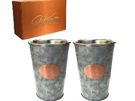 Galrose Galvanized Iron Mint Julep Cups - Set of 2 with Rose Gold Accents, Stainless Steel Lined Double Walled 16 oz Stylish Beer Glasses for Home Bars.