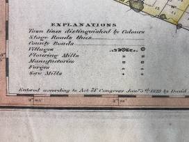 Framed Map of Hamilton County by David H. Burr - Illustrating Original townships of Hope, Lake Pleasant, Wells, Arthur Borough and Oxbow Tract. Also includes explanations of Stage Roads, County Roads, Villages, Flouring Mills, Manufactories, Forges, Saw Mills, Piseco Lake, Hudson River and Long Lake.