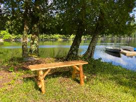This beautiful hickory bench from Otter Lake Rustics would look great in any home or camp! Pairs well with Adirondack chairs and a great view!