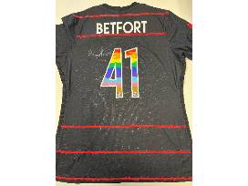 Bid on an authentic jersey personalized for and signed by Thorns forward Hannah Betfort worn during the Thorns Pride game on June 3, 2022. The jersey is a size large. All proceeds will be benefit The Q Center in Portland. *Certificate of authenticity included with purchase. *Shipping is not included in bid price, but can be purchased if won.