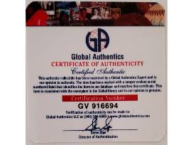 Denver Broncos jersey that has been signed by John Elway. The jersey has been certified authentic by Global Authentics. The finished size of the item is 40" wide x 30" tall.
