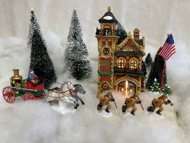 This scene is full of small-town Americana charm and is the perfect addition to any classic collection. Featuring charming antique fire equipment, this fire station scene ensures peace of mind for the rest of your winter villagers. The hardworking fire brigade is equipped and ready for action all winter long.