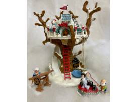 1A friendly snowman and his inviting tree house preside over this Santa-filled scene. Observe as one Santa works hard on a new sleigh design, another goes all-out for karaoke night (while a third tries to usher him off stage), and yet another Santa takes holiday photos. Add some whimsy and adventure to your holiday scene with this amusing collection!